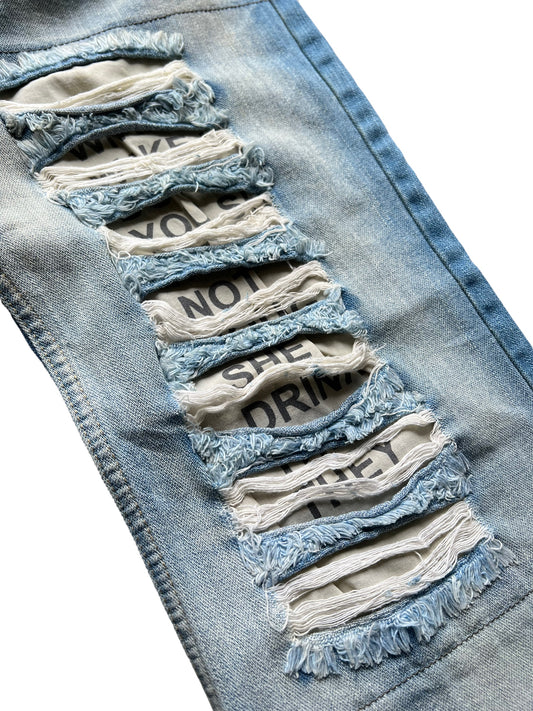 Sold outGibberish Poem Distressed Denim
