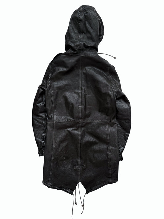 Special Garment Dye Spray Cow Leather Mod Coat Parka