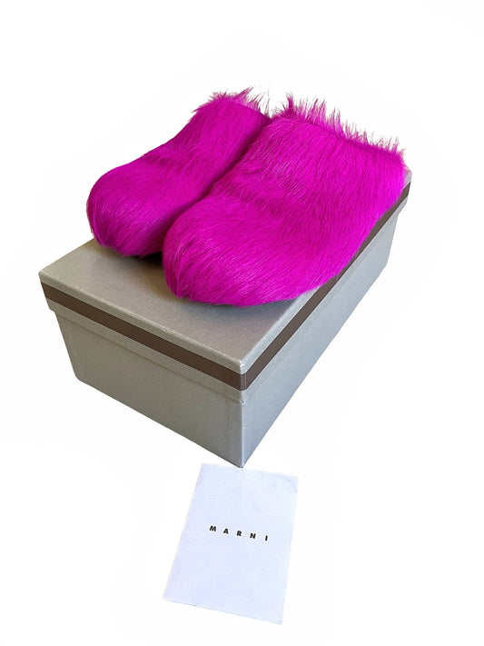 Sold outPink Calf Hair Fussbett Sabot Slide