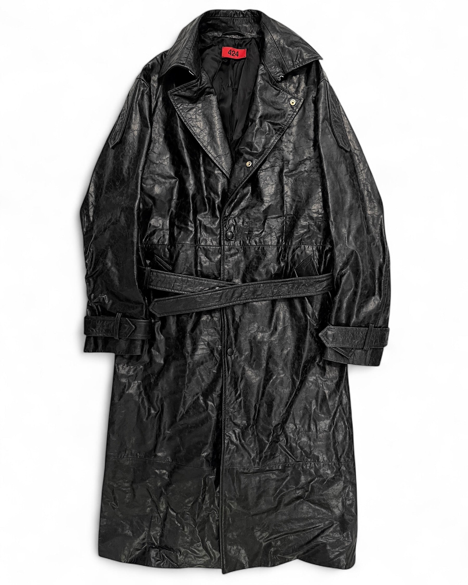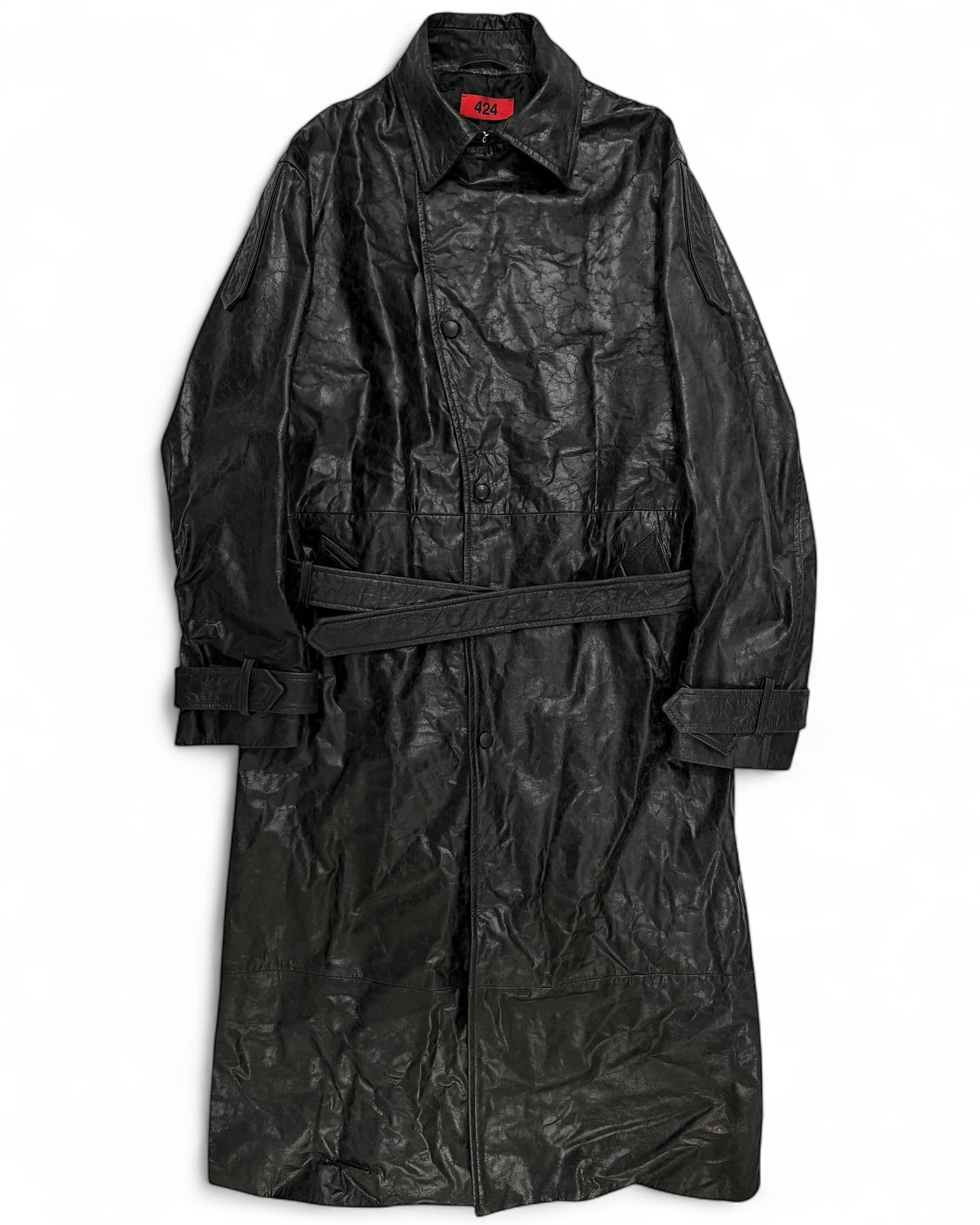 2024 Paper Effect Distressed Leather Trench Coat
