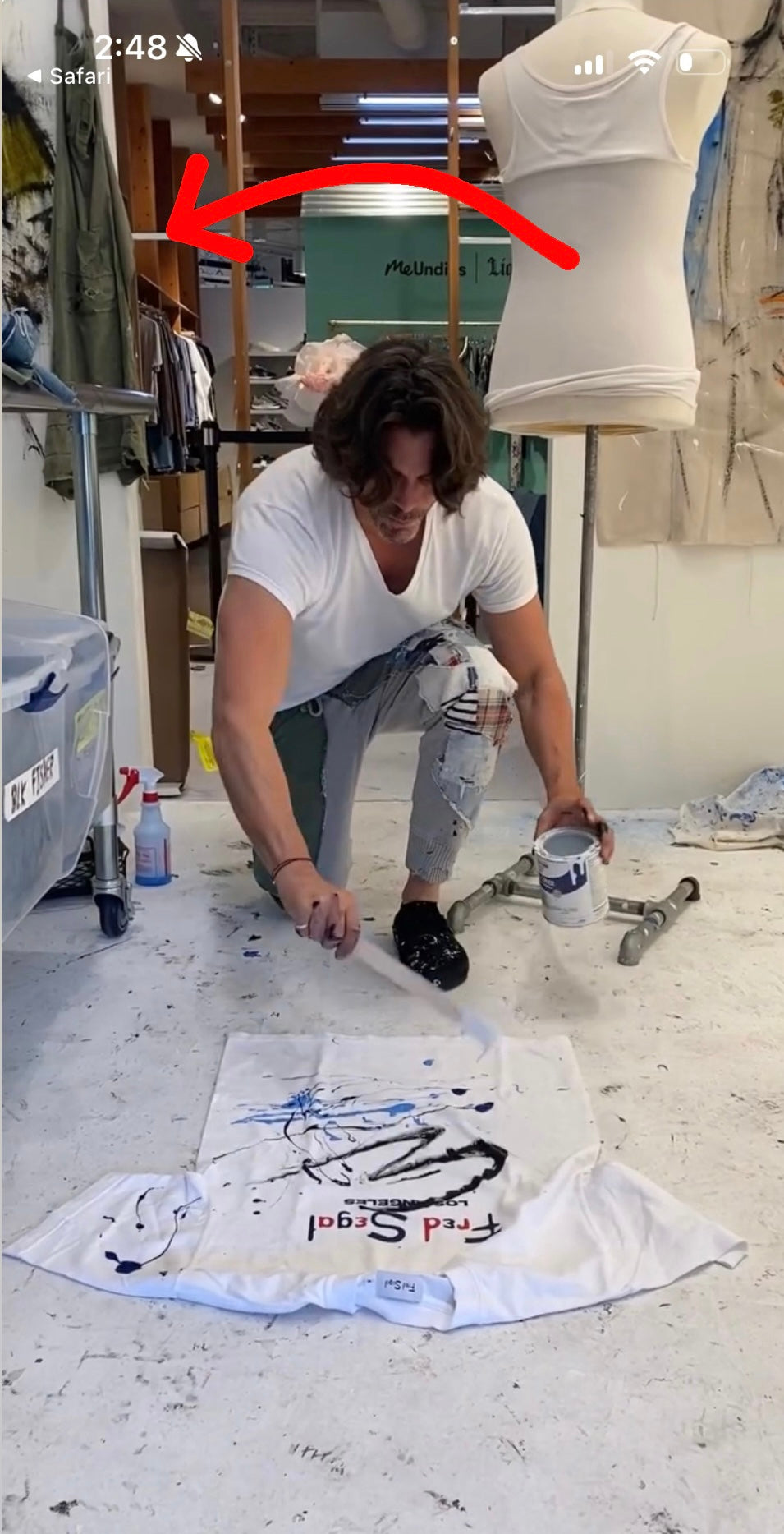 From the Fred Segal pop up, he was painting in and then hung it up you can see in the picture provided. One of One