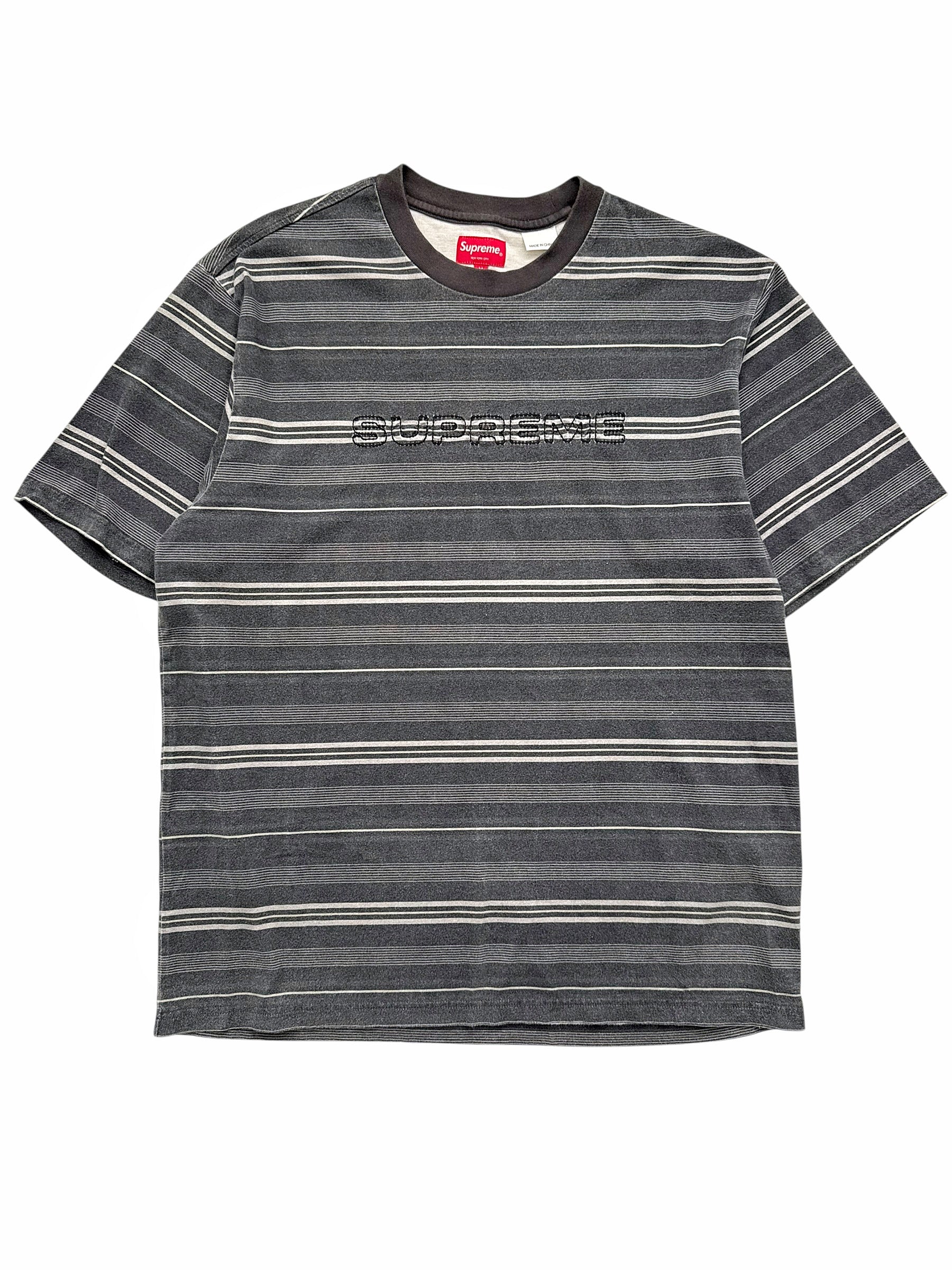 Grey Striped Cut Sew Embroidered Logo