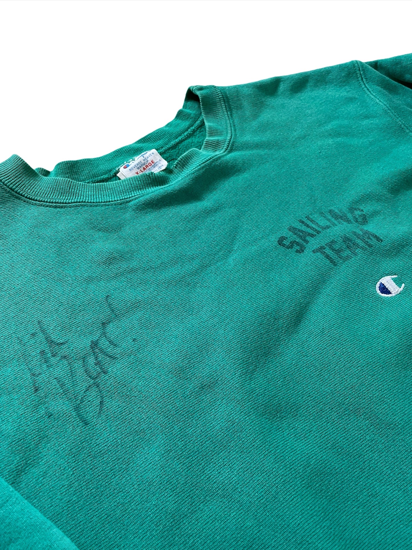 A sick Round Two printed Champion crewneck, signed by Lil Yachty at the store.
