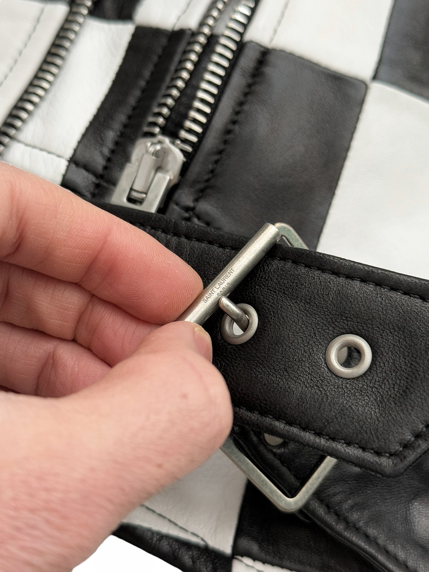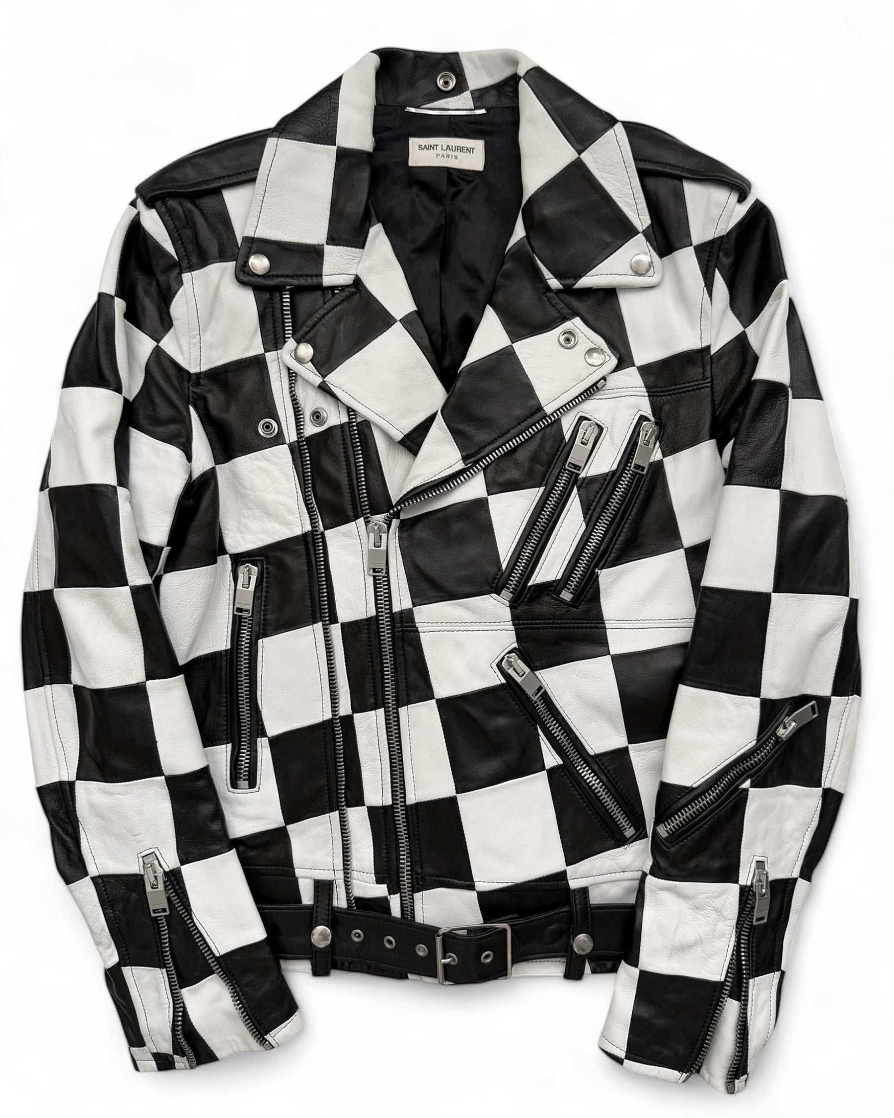 SS14 Checkerboard Patchwork L01 Lambskin Motorcycle Jacket