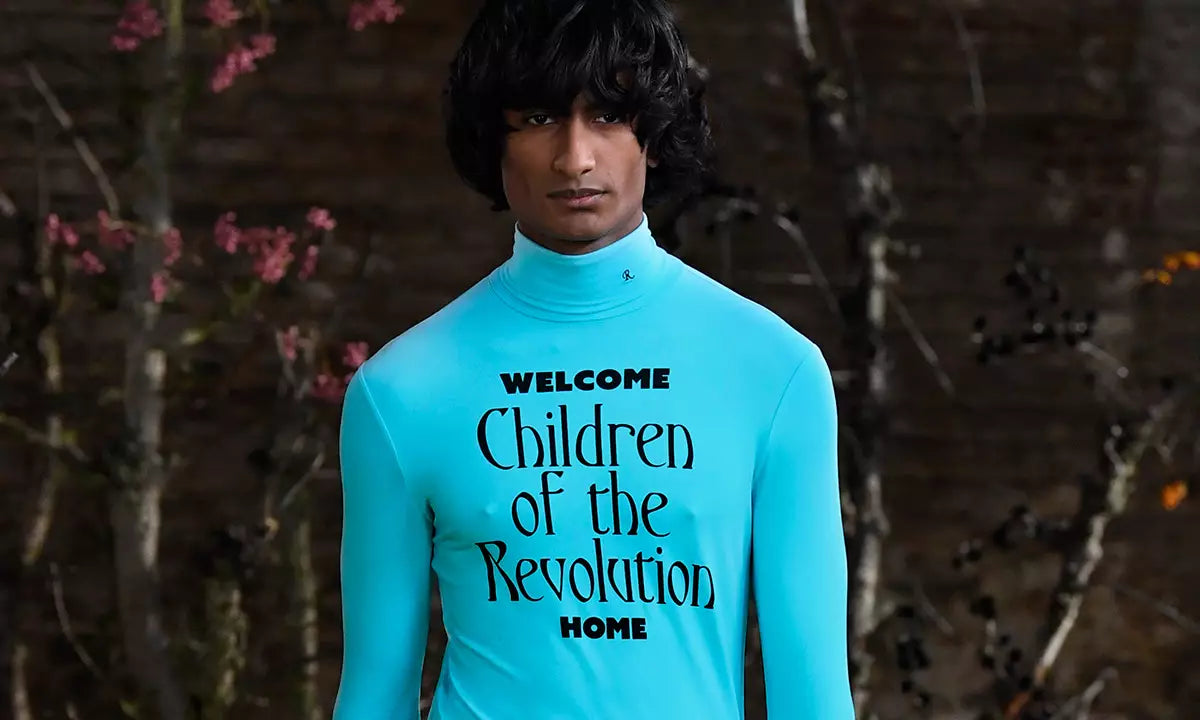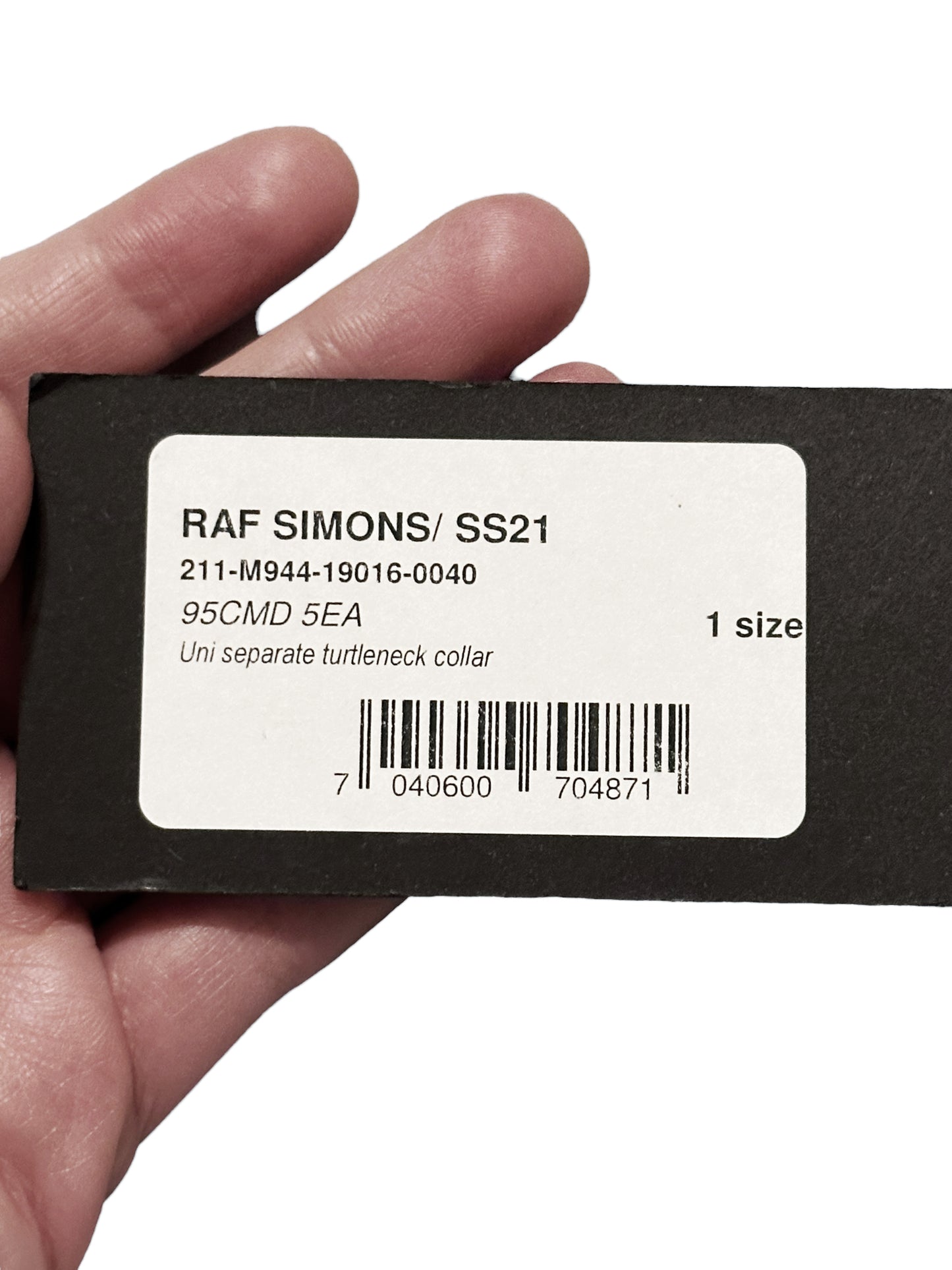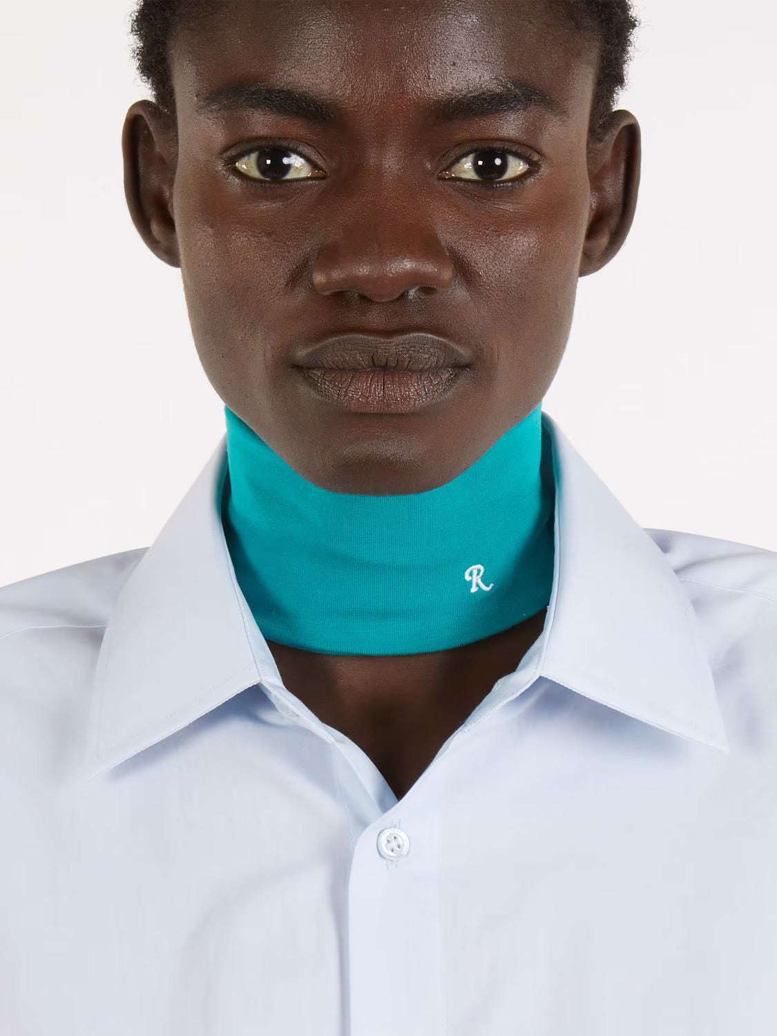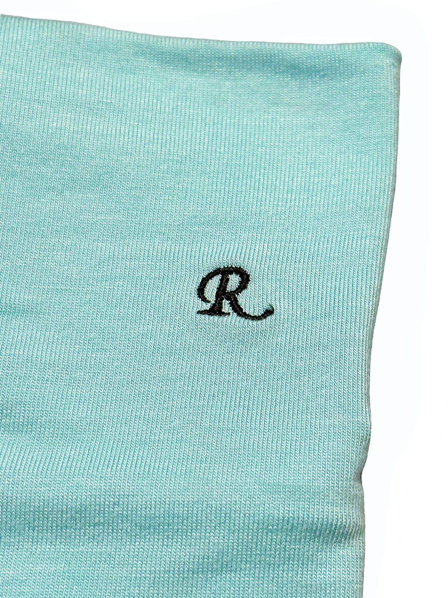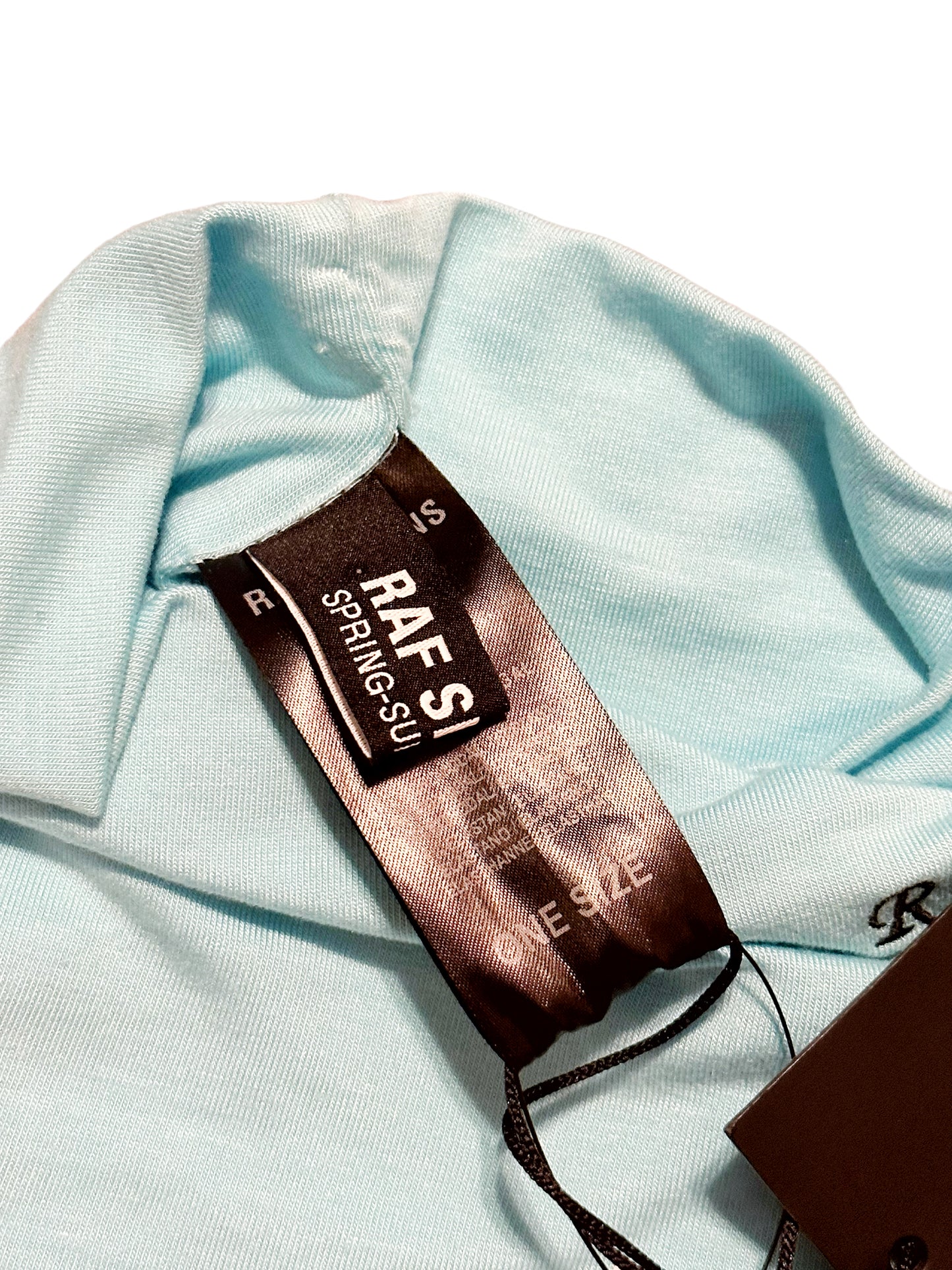 Straight off the runway, an illusion of a turtleneck neck band if you want to layer without covering your body etc. Has the cursive R logo embroidered onto it.